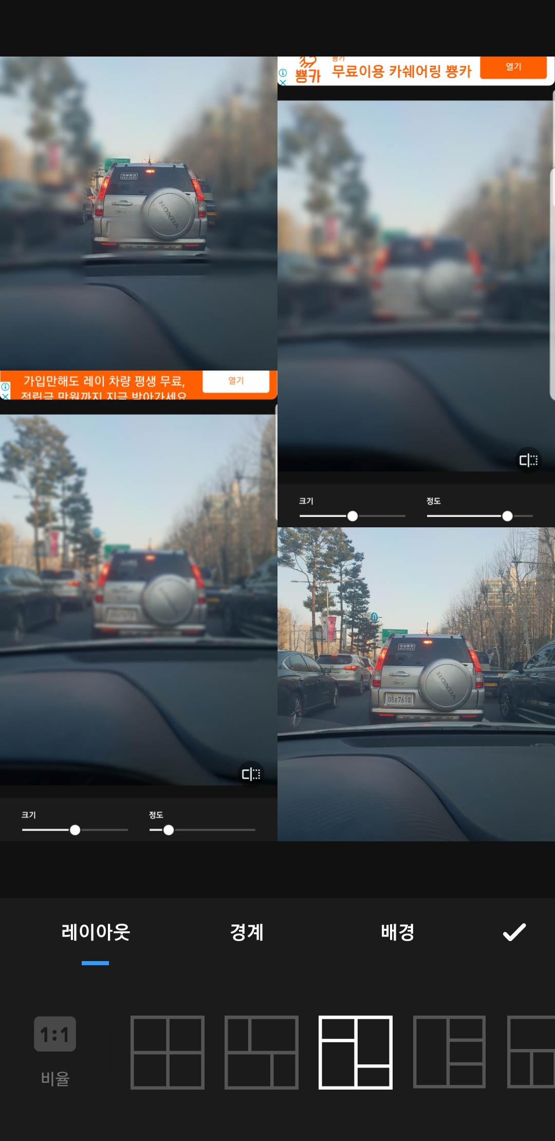 레이아웃 설정으로 다양한 콜라주 가능