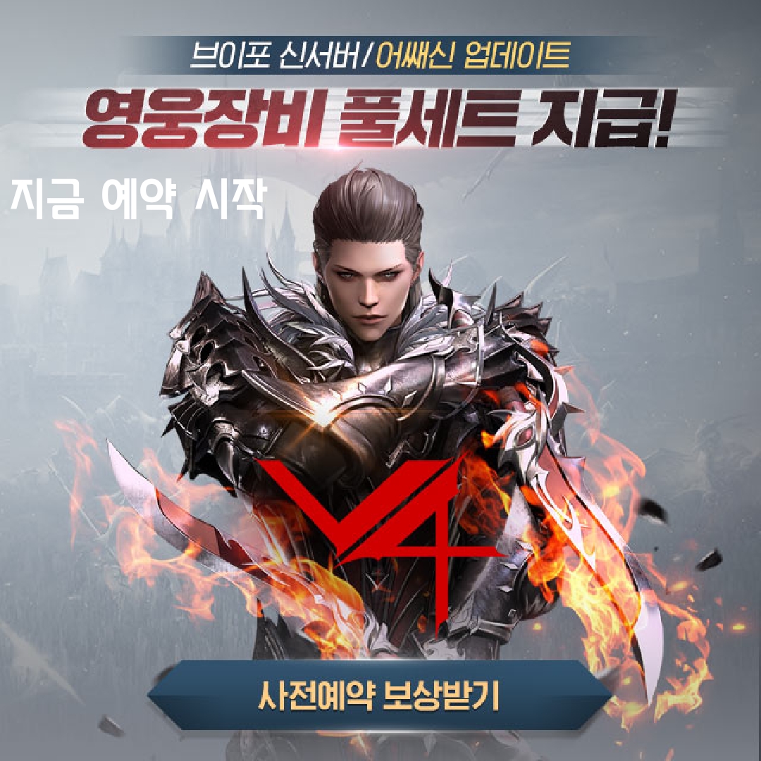 무튼 V4는 고퀄리티 그래픽과 상당히 많은 유저가 동접하는 것으로 알려져 있습니다. 일단 간단한 사전예약도 역시 매력적 입니다. 혹 관심이 있는 유저분들 이시라면 사전예약은 선택이 아닌 필수!