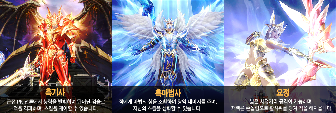 클래스는 흑기사 / 흙마법사 / 요정이며 흙마법사는 유일하게 성별 선택이 가능하다.