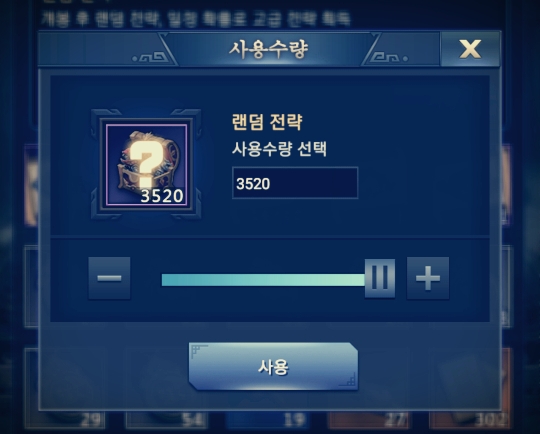 예상했지만 랜덤전략은 단계별 고급은 약 10% 중급은 31% 초급은 59%의 확률로 등장!