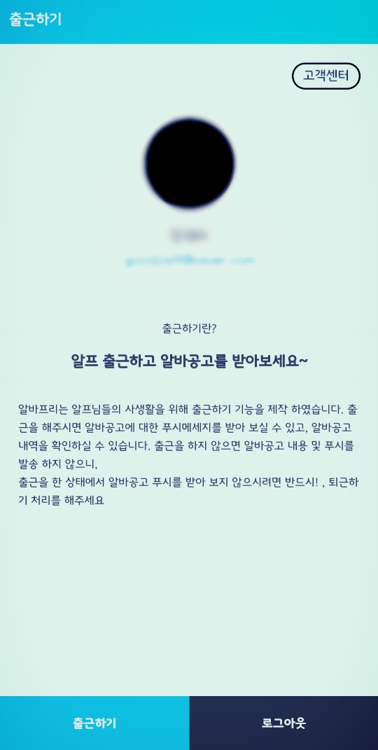 사생활 보호를 위해 출근하기를 눌러야지만 푸쉬알림 가능! 이거 좋군요
