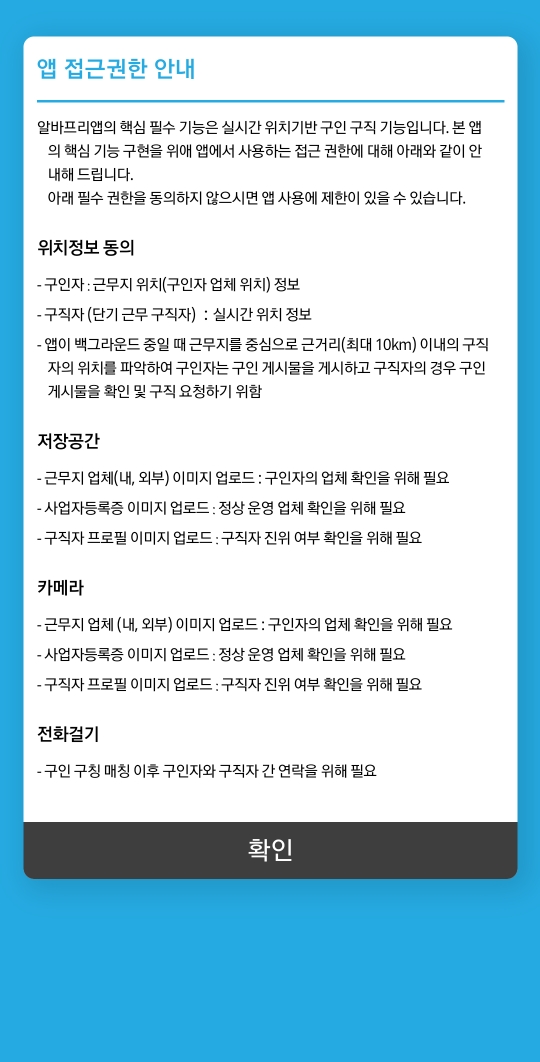 알바프리는 필요할 때 언제 어디서든 구인구직이 가능한 실시간 위치기반 플랫폼입니다.