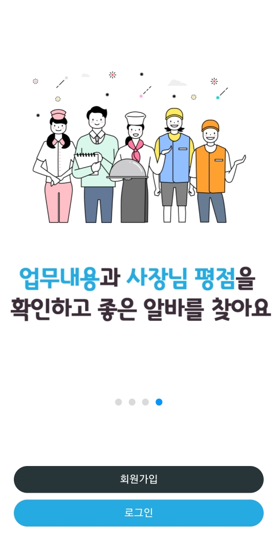 설치하기 - 사장님 또는 알바님 선택 - 이력서 작성 회원가입(완전무료)